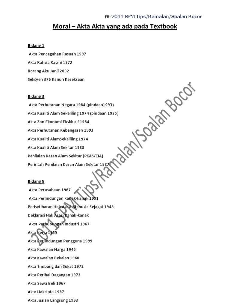 Akta kawalan harga 1946 akta kawalan bekalan 1961 akta timbang dan sukat 1972 akta sewa beli 1967 akta hak cipta 1987 akta jualan langsung 1993. akta kawalan harga 1946 (pindaan 1973). Nilai amanah akta pencegahan rasuah 1007 akta rahsia rasmi 1972. Akta pemajuan perumahan (kawalan dan pelesenan) 1966. Akta kawalan harga 1946 19.