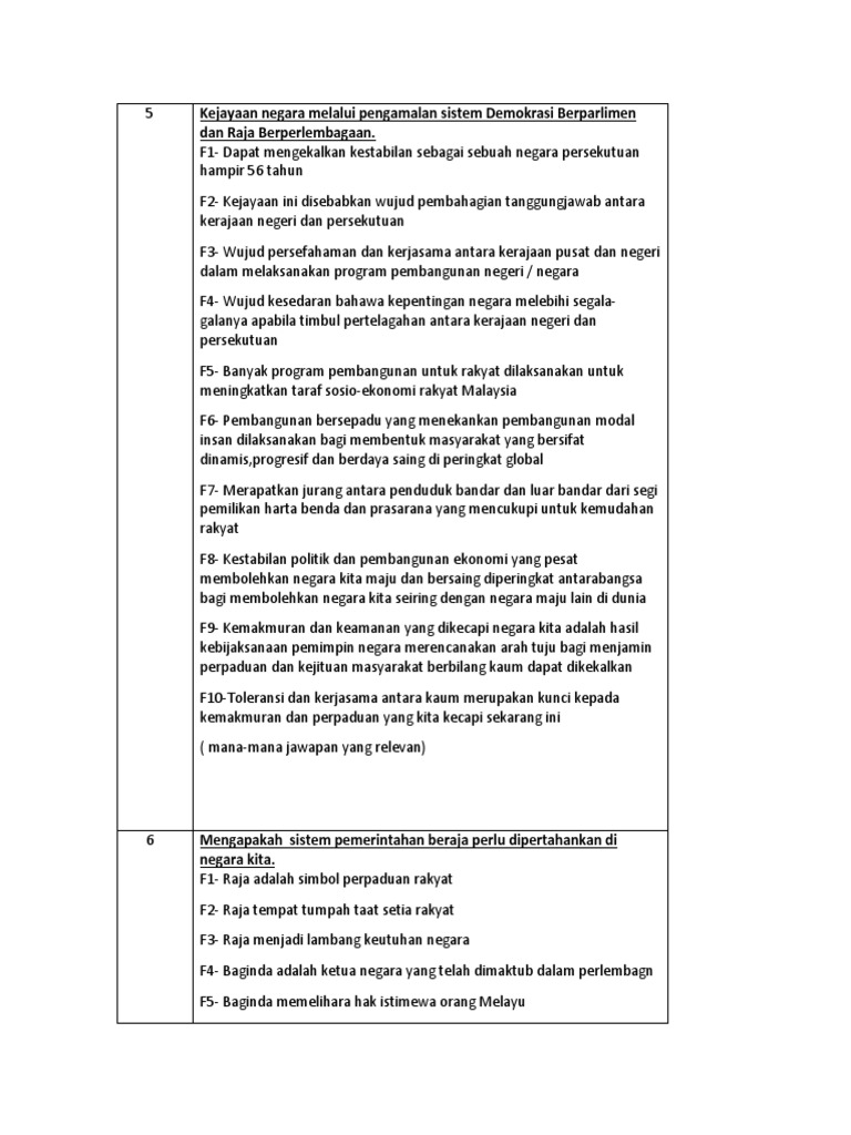 T5 B1 Soalan Pdf Document from demo.vdocuments.mx F1 raja merupakan ketua negara f2 raja lambing kedaulatan negara f3 warisan turun temurun sejak zaman kmm f4 lambang keamanan rakyat f5 lambang perpaduan f6 pelindung semua rakyat f7 pelindung orang melayu Jika anda tidak mempunyai kelebihan daya saing yang dapat dikenal pasti lebih baik mencari lokasi di kawasan yang sama sekali berbeza. Sebab masyarakat tidak menghormati institusi raja berperlembagaan. Menyumbang keamanan dan kesejahteraan masyarakat perpaduan dalam masyarakat pelbagai kaum, budaya dan agama menjadi asas penting menjamin. Pada masa ini, mereka mengamalkan sistem pemerintahan beraja. Maka, institusi beraja di malaysia pada masa kini perlu dikekalkan dan diperlihara. 4 fungsi mereka yang kat atas memang relevan. Sebab sistem beraja perlu dipertahankan for more information and source, see on this link :